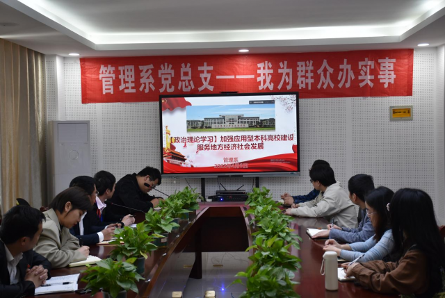 4月6日,管理系在明辨楼KN301召开“加强应用型本科高校建设服务地方经济社会发展”专题学习。管理系主任孙小飞主持会议,全体教职工通过线上、线下方式参加会议。