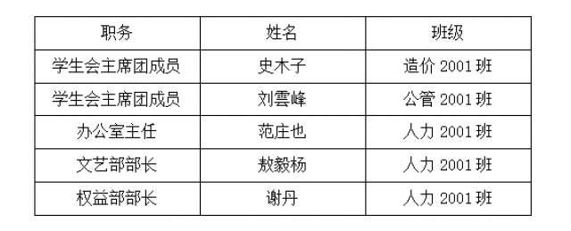 根据《江西农业大学南昌商学院管理系第十九届学生委员会委员候选人产生条件及办法》通过自荐和推荐相结合的方式产生候选人,通过江西农业大学南昌商学院管理系第九次学生代表大会,投票选拔管理系第十九届学生会部长及以上学生骨干,名单公示如下: