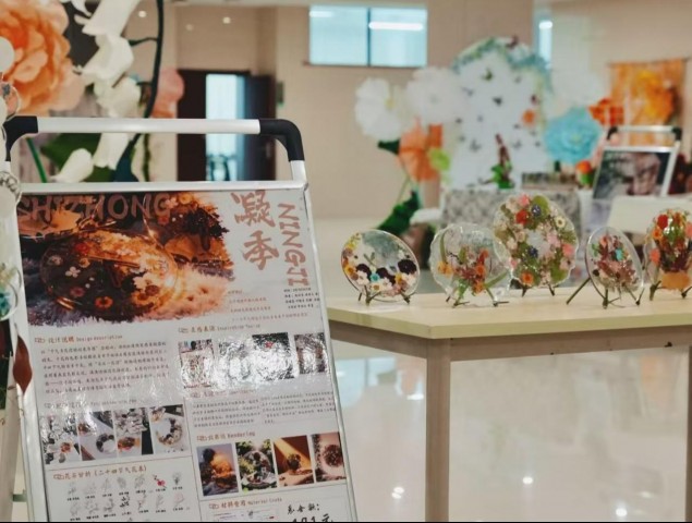 本次展览由环境设计专业教师邢春艳指导,环境设计(Z)2301-2302班学生团队共同创作。展览以二十四节气为主线,深度融汇传统物候美学与现代花艺设计,是专业教学践行“以劳育人、以文化人”理念的一次生动体现。现场展出的节气风铃、主题花艺装置等作品,吸引众多师生驻足观赏。灵动巧妙的设计,充分展现了学子们的匠心与才华。